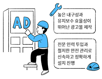 옥상 간판을 안전하고 효율적인 수익 구조로 설계합니다.