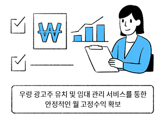 | 높은 가시성 | 24시간 노출 | 고정 수익 창출 | 자산 활용도 증가 |